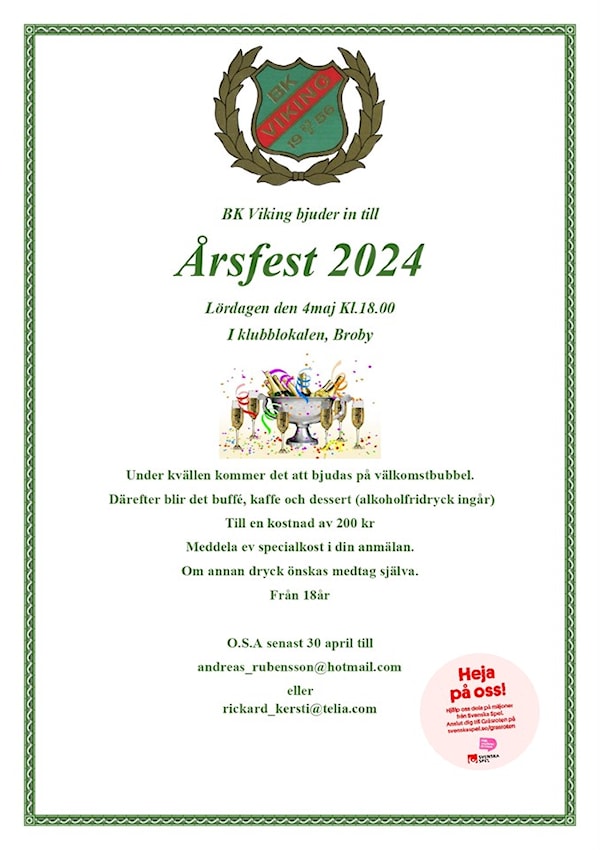 Ser fram emot en trevlig kväll tillsammans, hoppas vi ses!